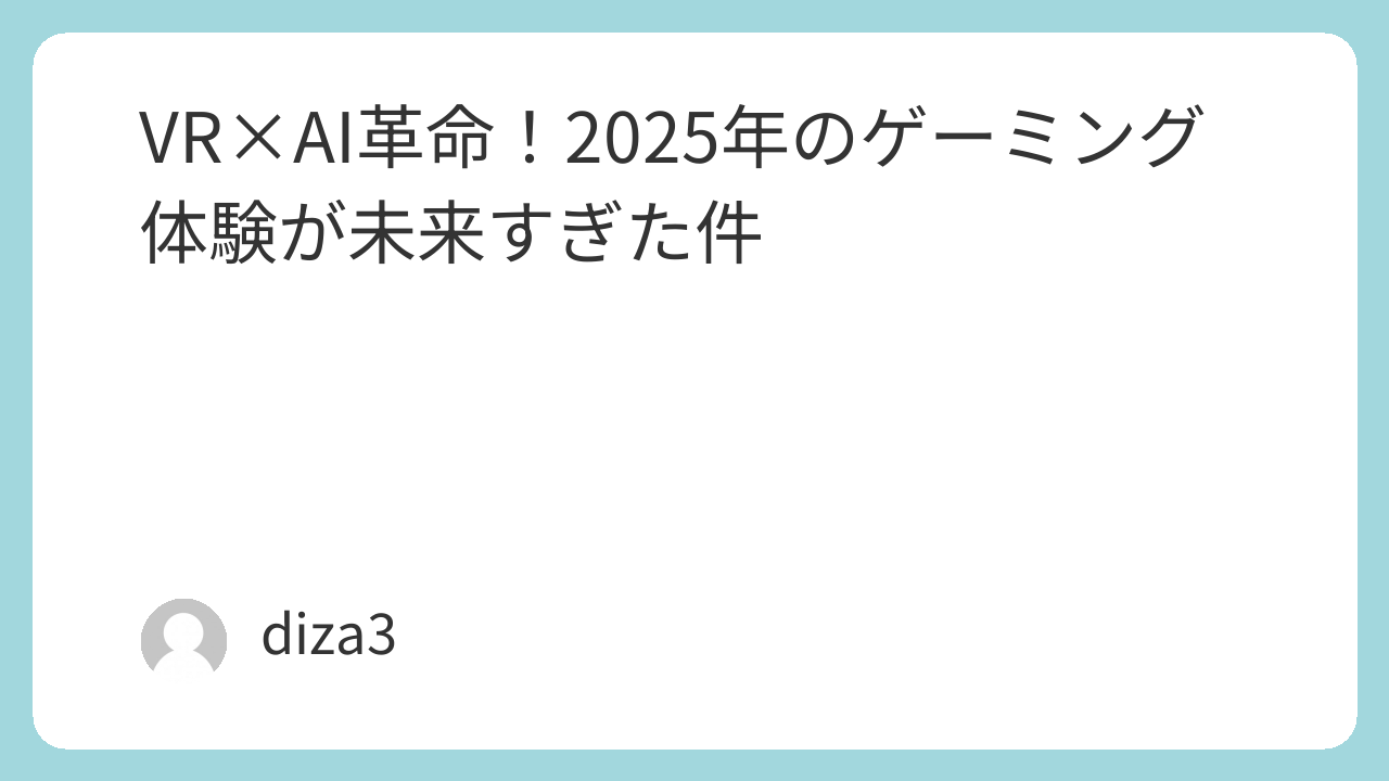 VR×AI革命!2025年のゲーミング体験が未来すぎた件