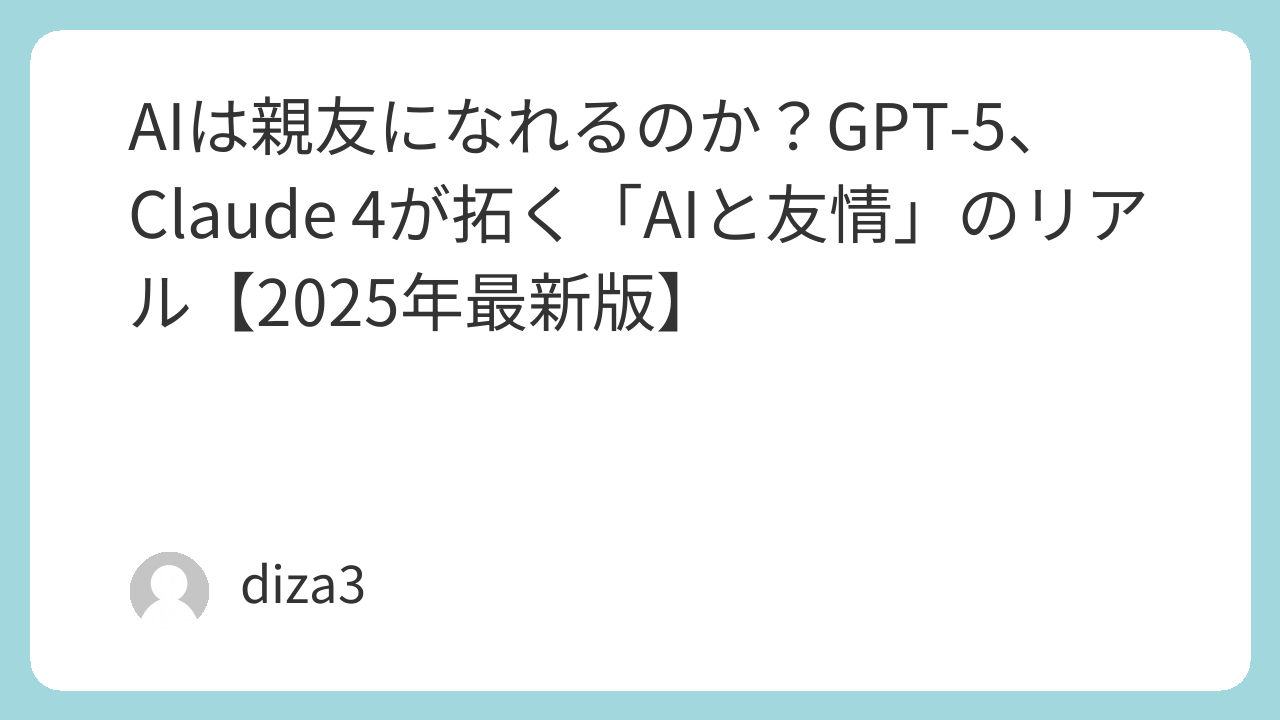 この記事では、OpenAIのGPT-5やAnthropicのClaude 4といった次世代AIの登場を前提に、AIとの友情がどこまで可能なのか、そのためにどんな技術が使われているのか、そして私たちの生活や人間関係にどのような影響を与えるのかを、最新のトレンドを交えながら徹底的に掘り下げていきます。さあ、AIと人間の新しい関係性を探る旅に出かけましょう!